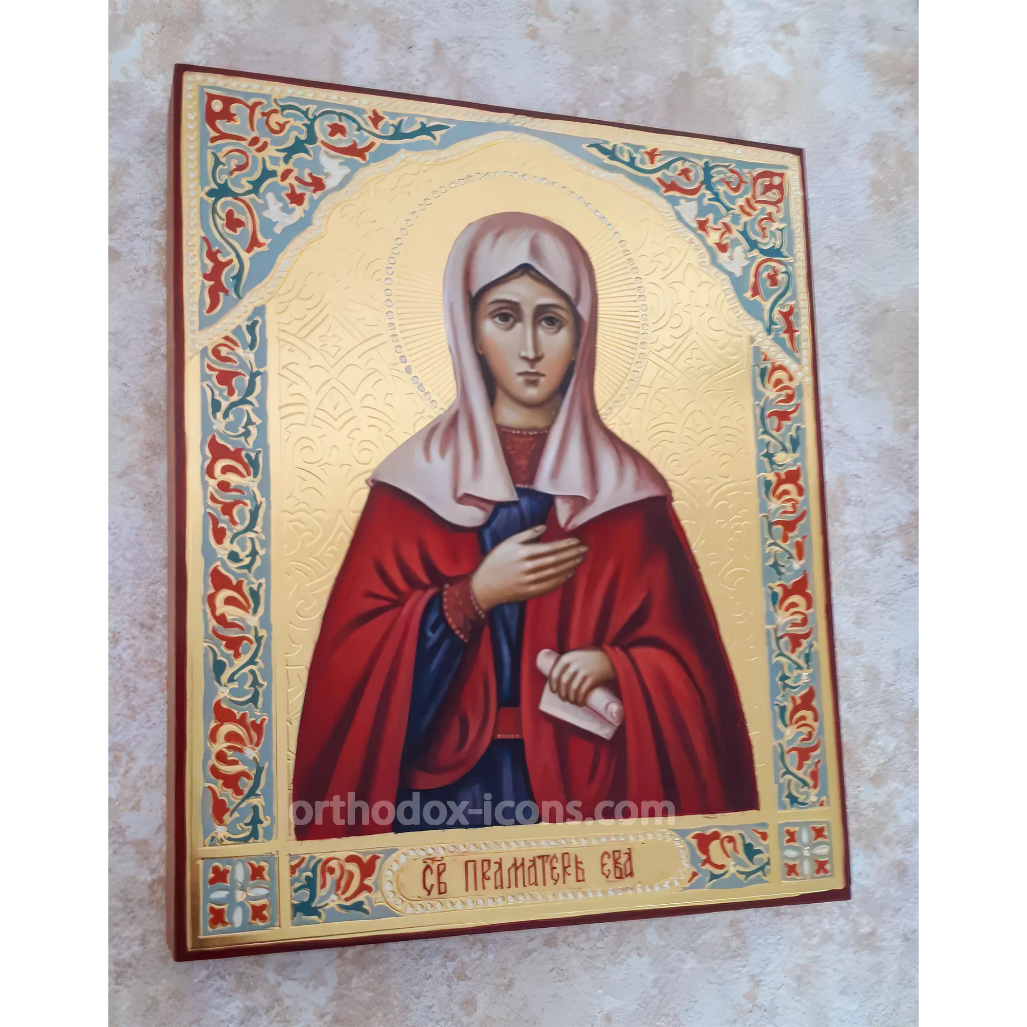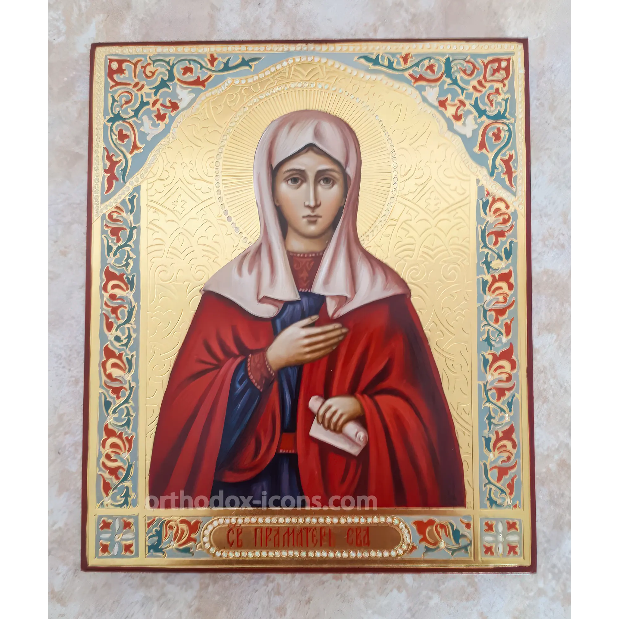 At the Mstyora Icons Icon Workshop you can buy an icon of Eva, which is made in the best traditions of Russian iconography. The hand-painted icon of Eva is not only an expression of spiritual elevation and faith, but also a true work of art, which will become an exquisite decoration of your iconostasis.