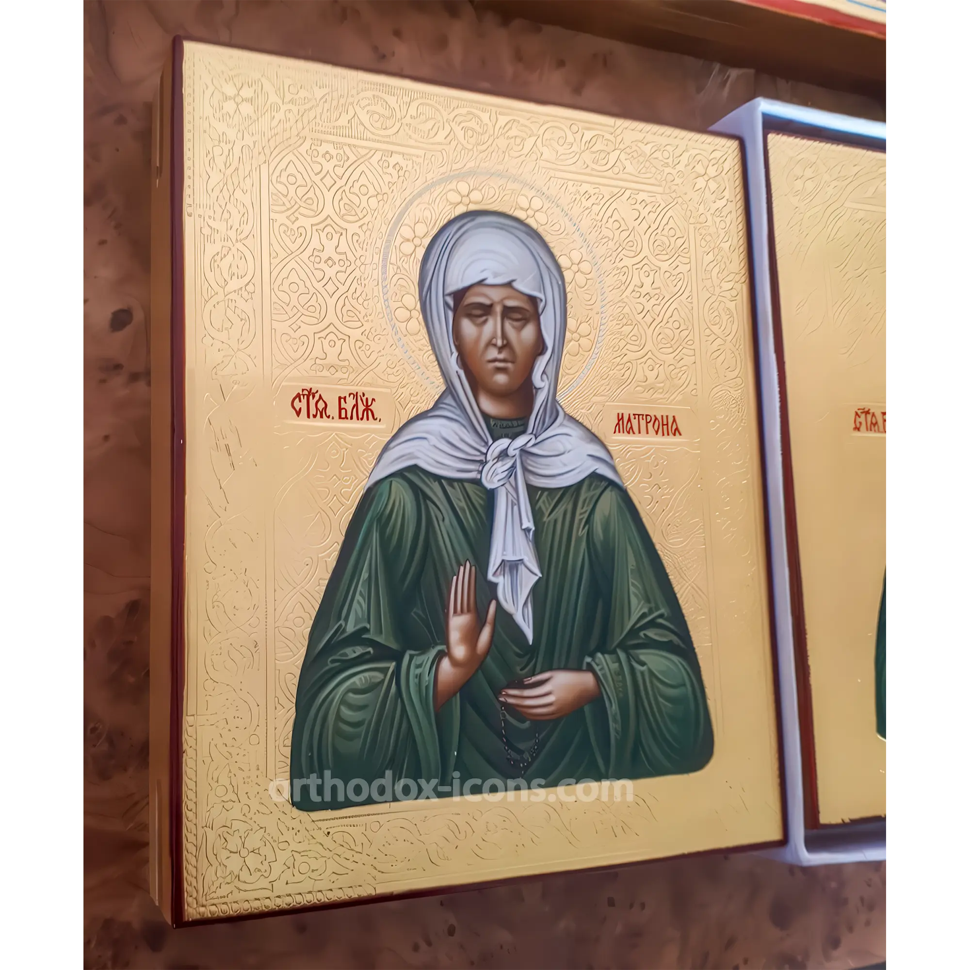 Order an Orthodox Icon Blessed Matrona of Moscow in the icon painting workshop “Mstyora Icons”, Mstyora, Vladimir region, where icons have been painted since 1628.