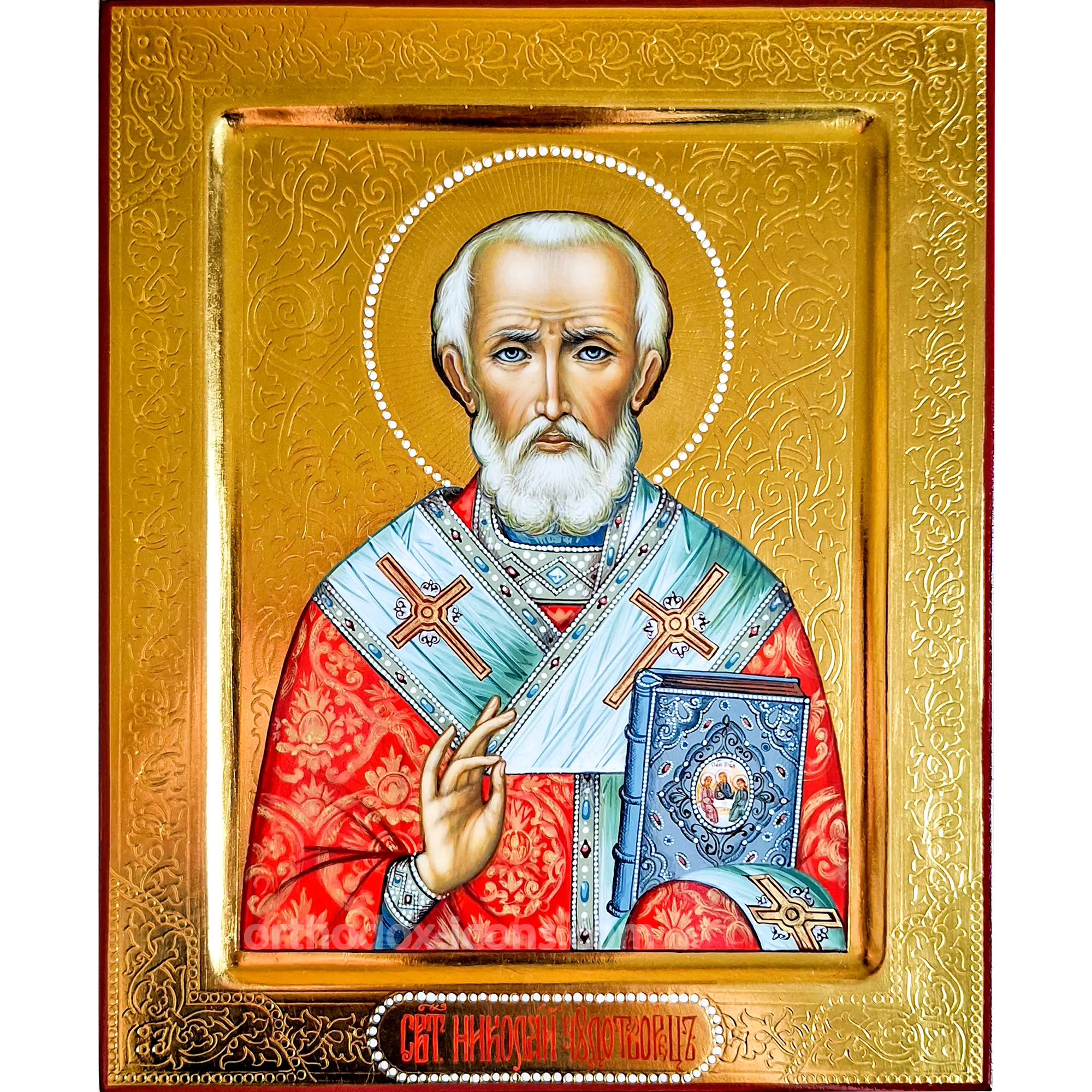 In conclusion, the Orthodox Icon of Saint Nicholas is a cherished symbol of generosity and miraculous intervention. It invites believers to reflect on the acts of kindness and miraculous interventions attributed to Saint Nicholas and to seek his intercession in their lives. This icon serves as a powerful reminder of the transformative power of faith and the compassionate presence of Saint Nicholas in the lives of believers.