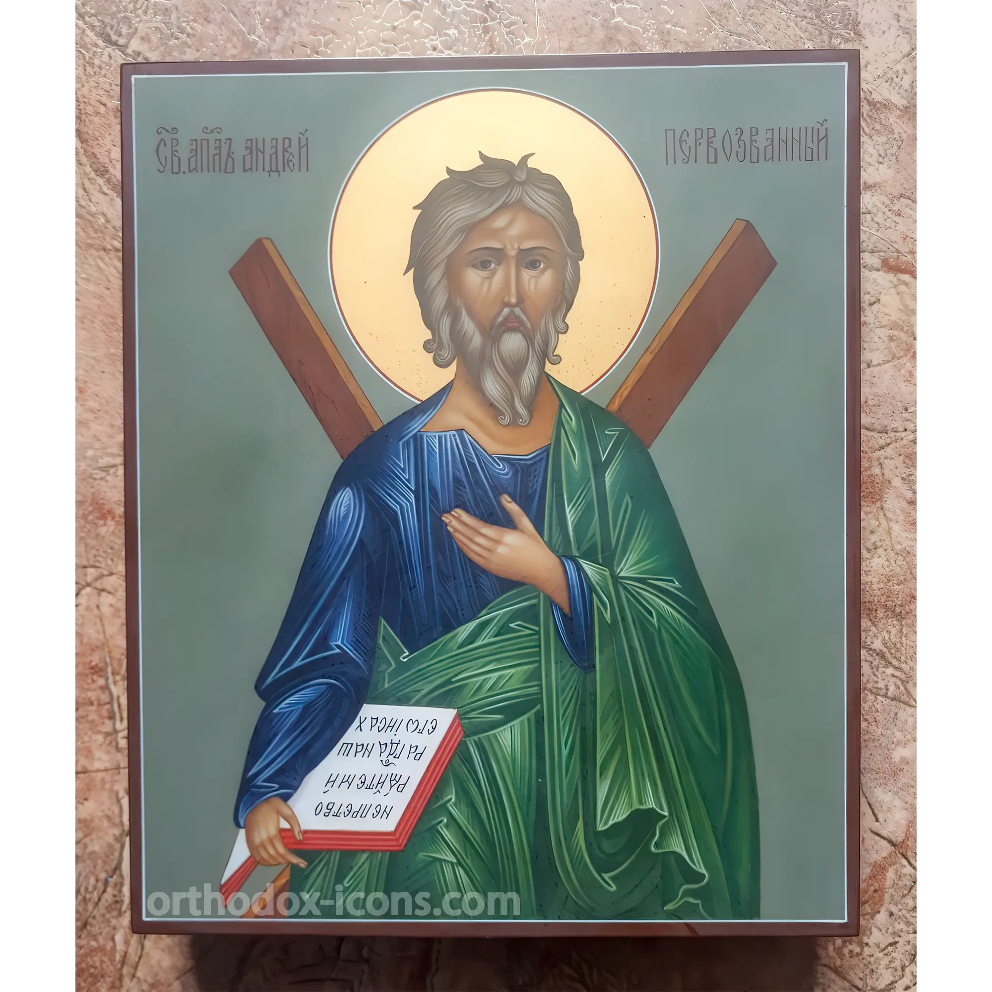 Choose an icon of St. Andrew from our catalog and enjoy the beauty of spiritual art. Buy an icon of St. Andrew is very easy, place an order on our website right now.