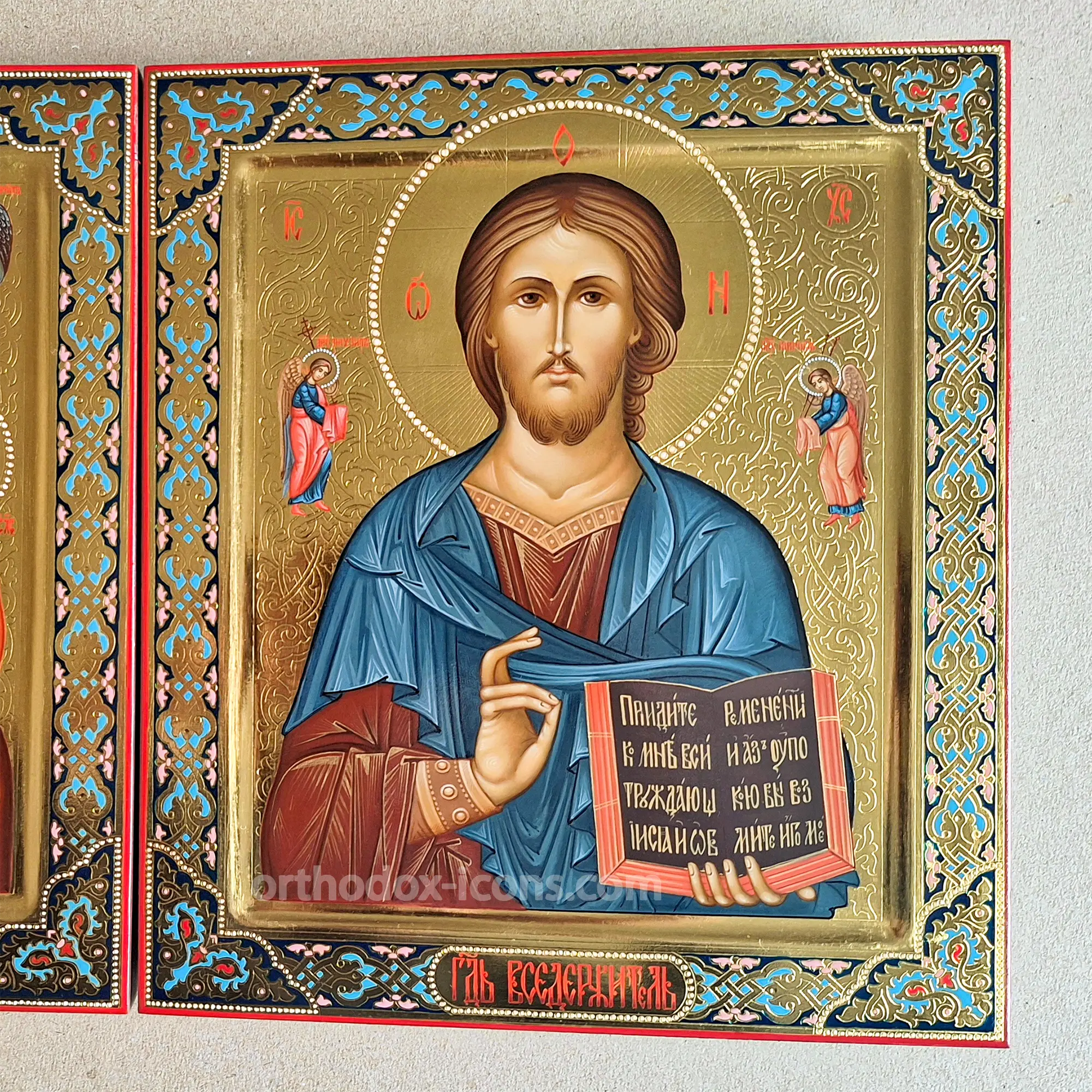 The Christ the Savior Orthodox Icon typically depicts Jesus Christ with a serene expression, radiating compassion and grace. He is shown with a halo, symbolizing his divine nature, and often holds an open Gospel book or raises his right hand in a gesture of blessing. The icon captures the essence of Christ’s teachings and his role as the Savior of humanity.