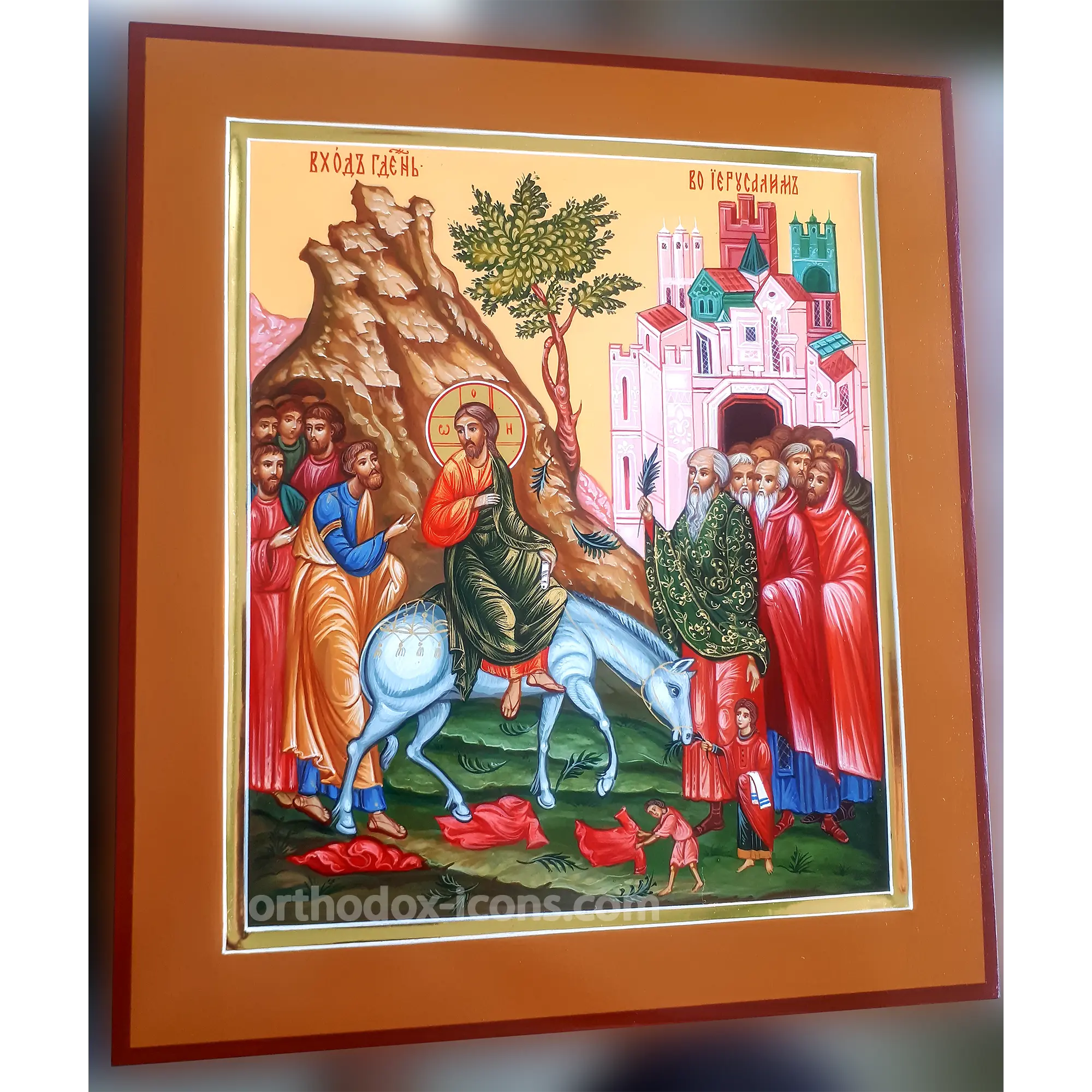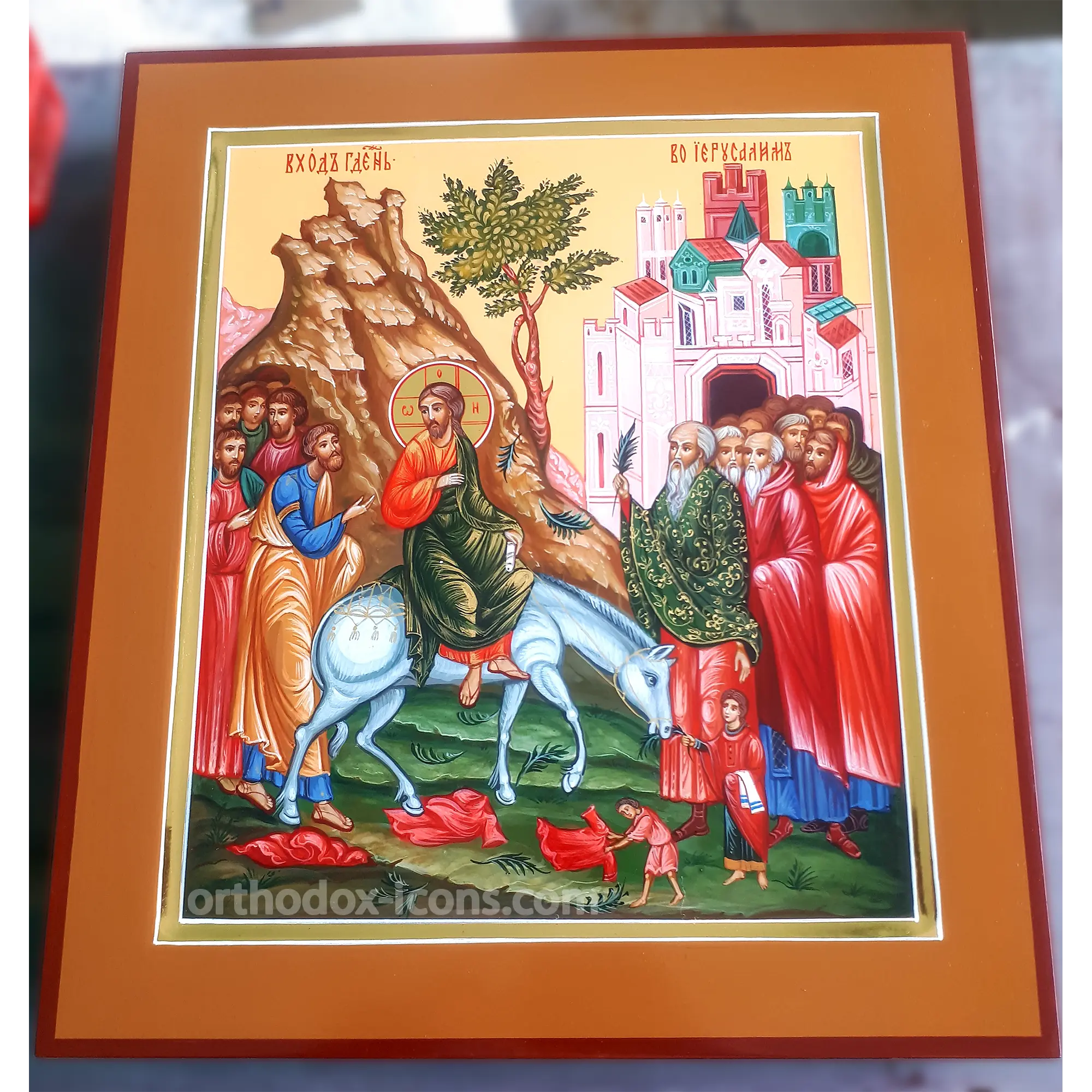 The Entry into Jerusalem Orthodox Icon will be painted for you in the workshop to order.