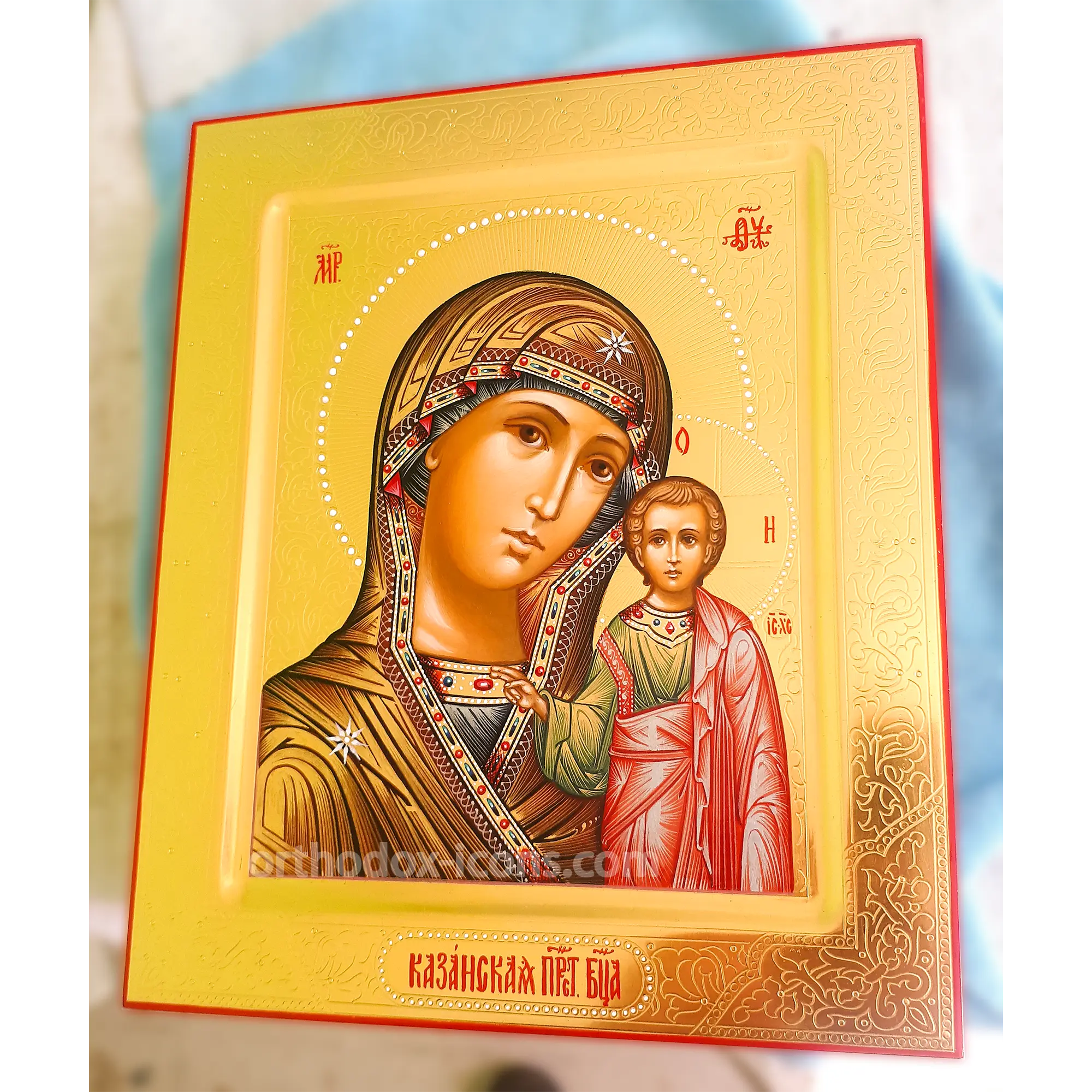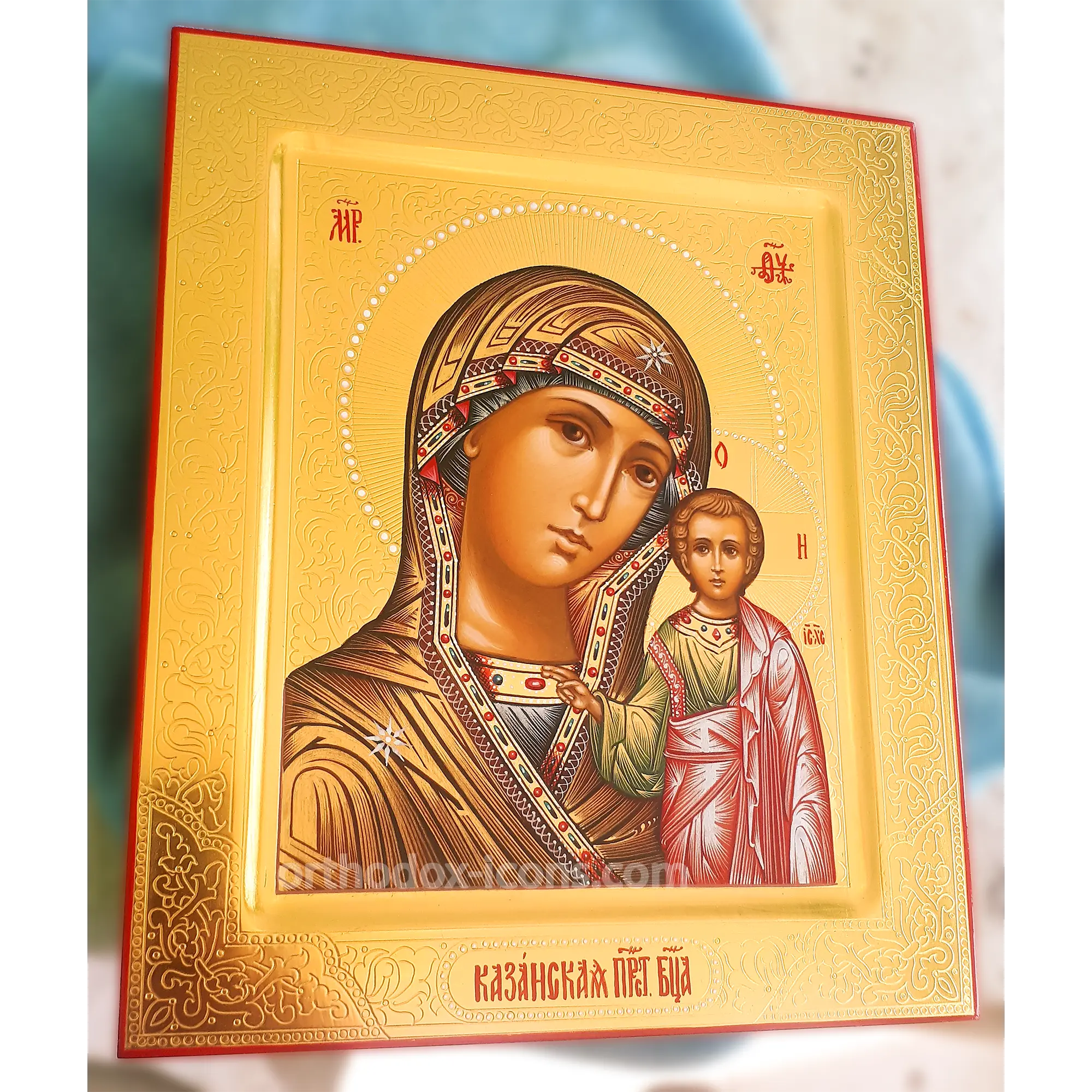 Kazan Holy Mary Orthodox Icon is one of the most revered and famous icons in Orthodoxy. It depicts the Mother of God with the infant Jesus in her arms. The Mother of God is depicted in a sign of reverence and respect, with great modesty and tenderness.
