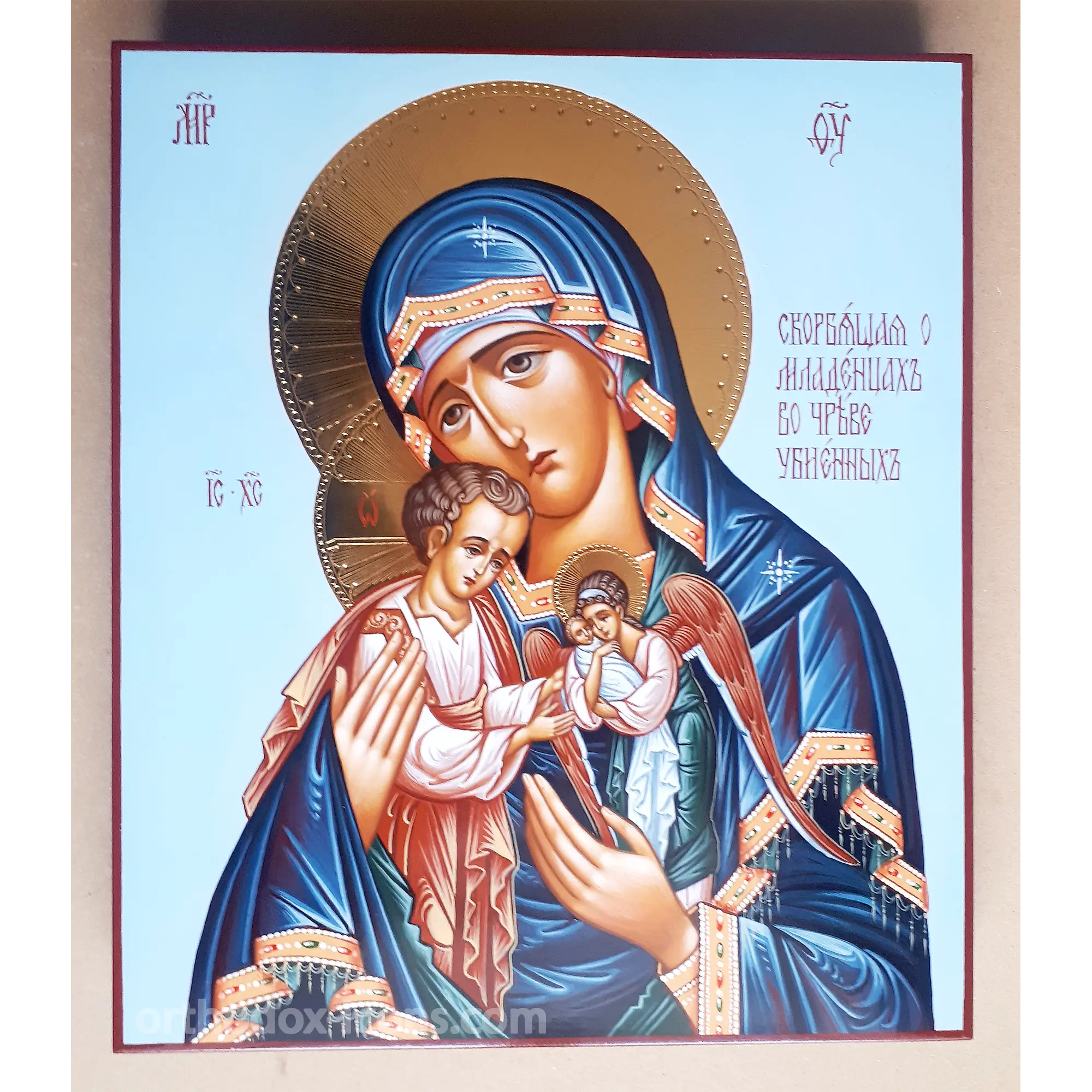 The icon has a deep spiritual meaning and recalls the terrible event described in the Gospel of Matthew. According to this sacred text, Herod ordered the killing of all newborn babies in and around Bethlehem, hoping to destroy the infant Jesus, whom he saw as a threat to his reign. The Mother of God, Mary, grieved and wept for the innocent children who were victims of this brutal mass murder.