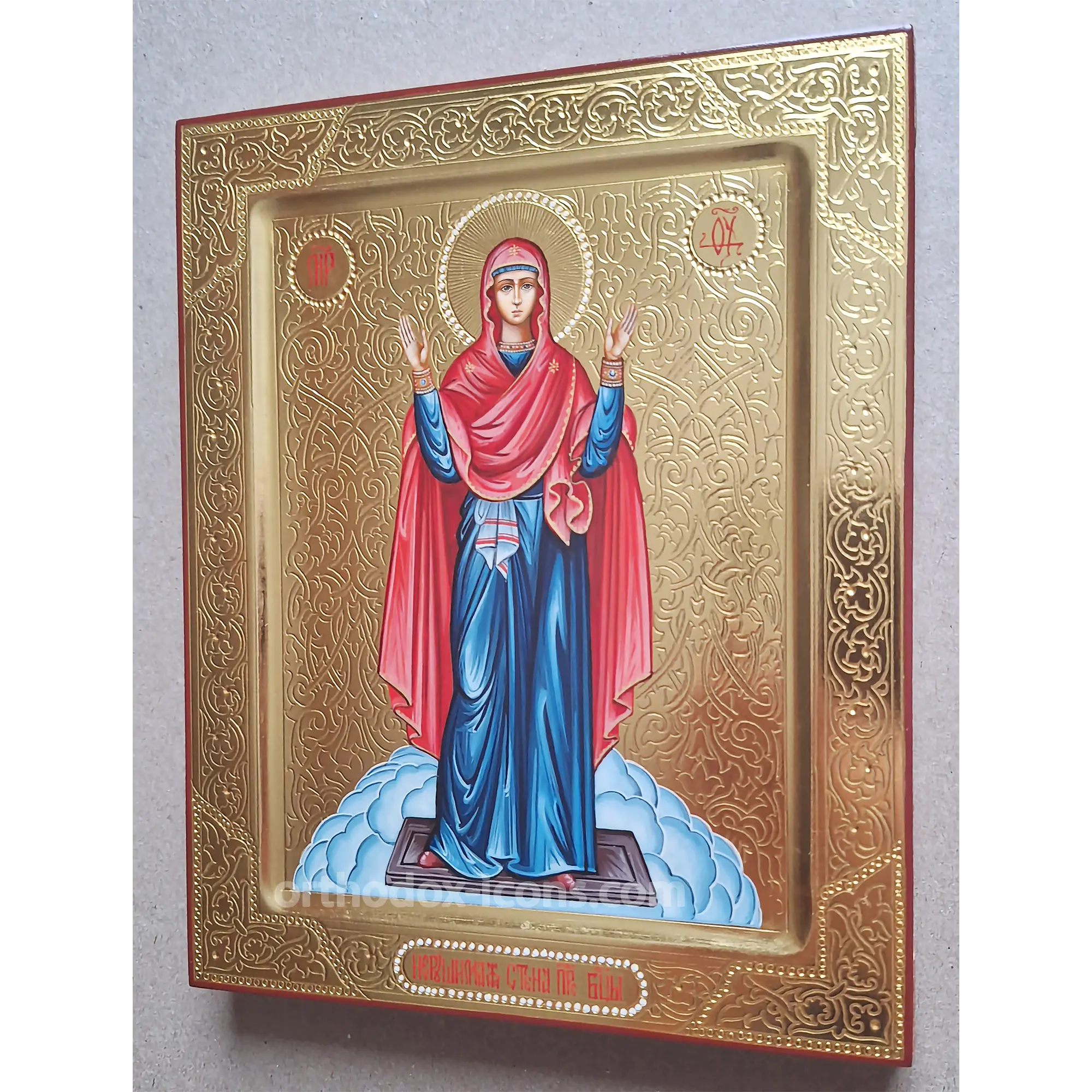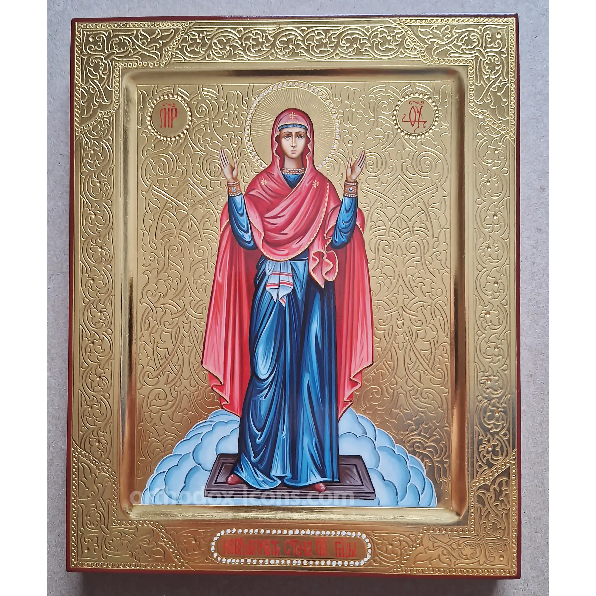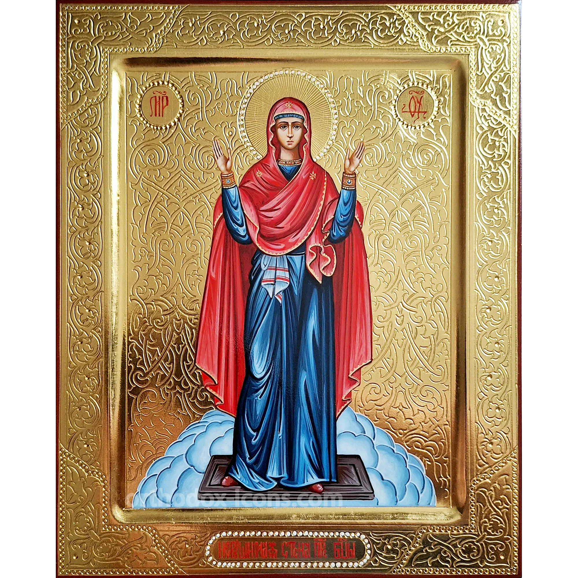 Order the Orthodox Icon of Unbreakable Wall of the Blessed Virgin Mary from the icon-painting workshop “Mstyora Icons” in the village of Mstyora, Vladimir region, where icons have been painted since 1628.