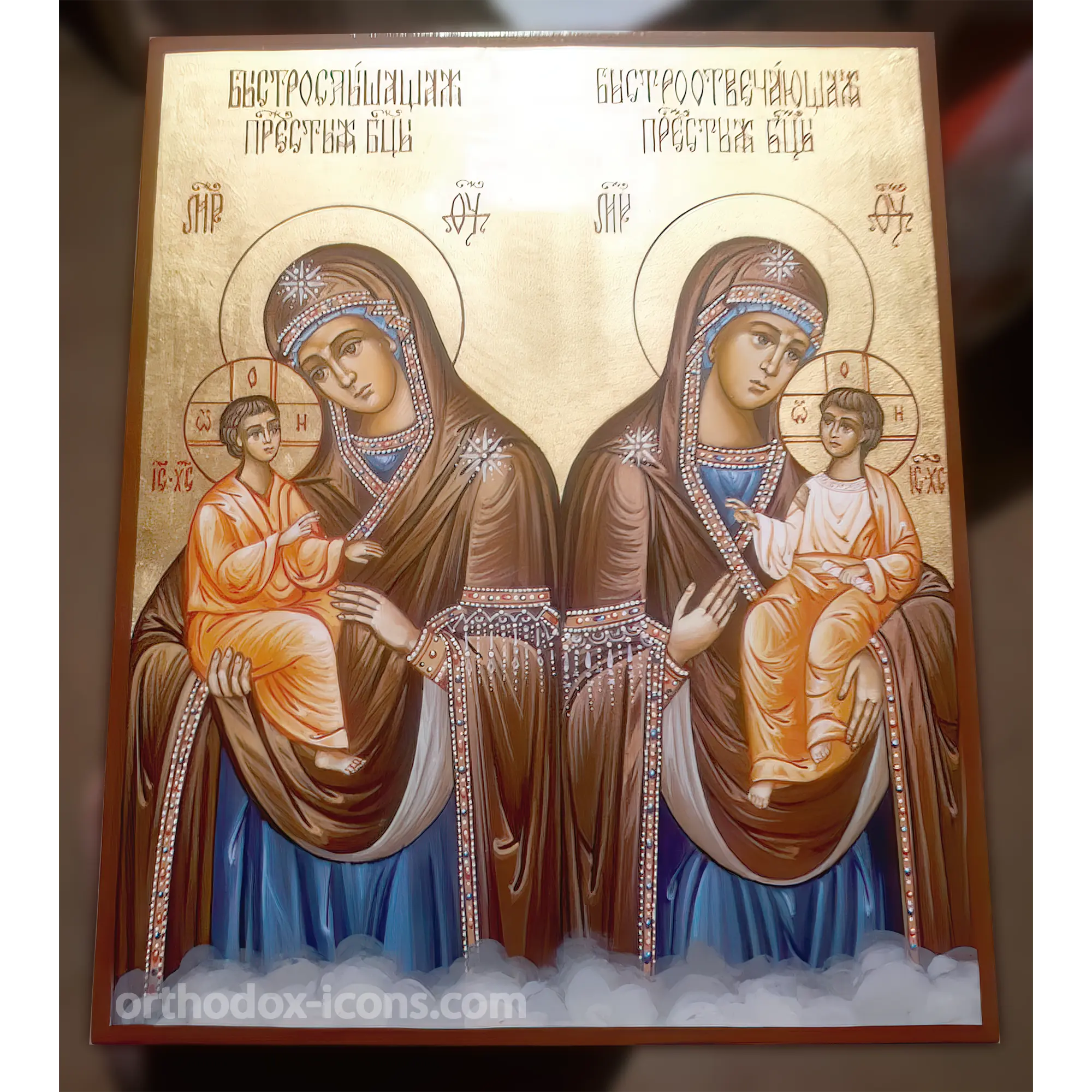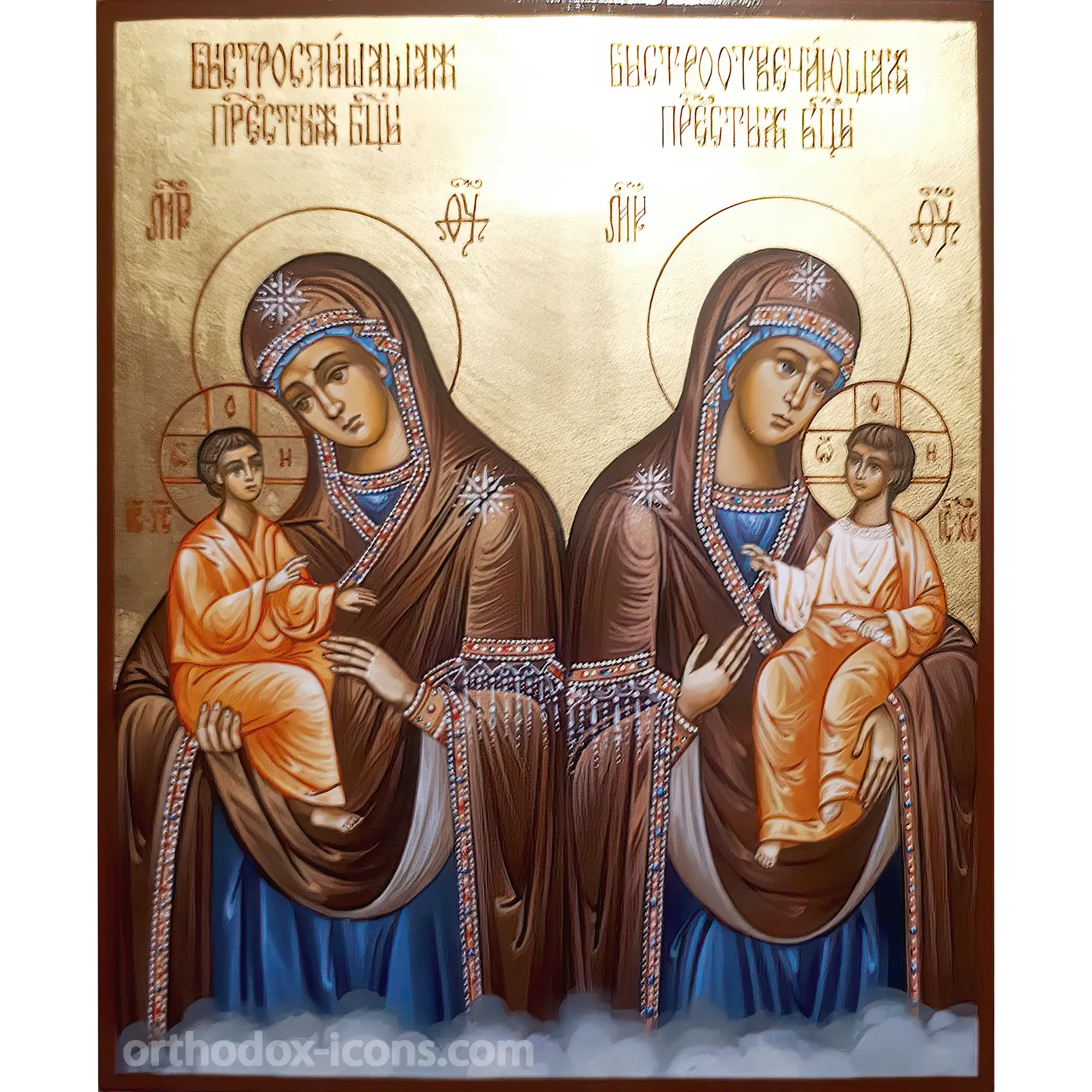 In the icon painting workshop “Mstyora Icons” you can buy the icon of Quick-Hearing and Quick-Response, which is made in the best traditions of Russian iconography. Handmade icon of the Blessed Virgin Mary is not only an expression of spiritual elevation and faith, but also a real work of art, which will become an exquisite decoration of your iconostasis.