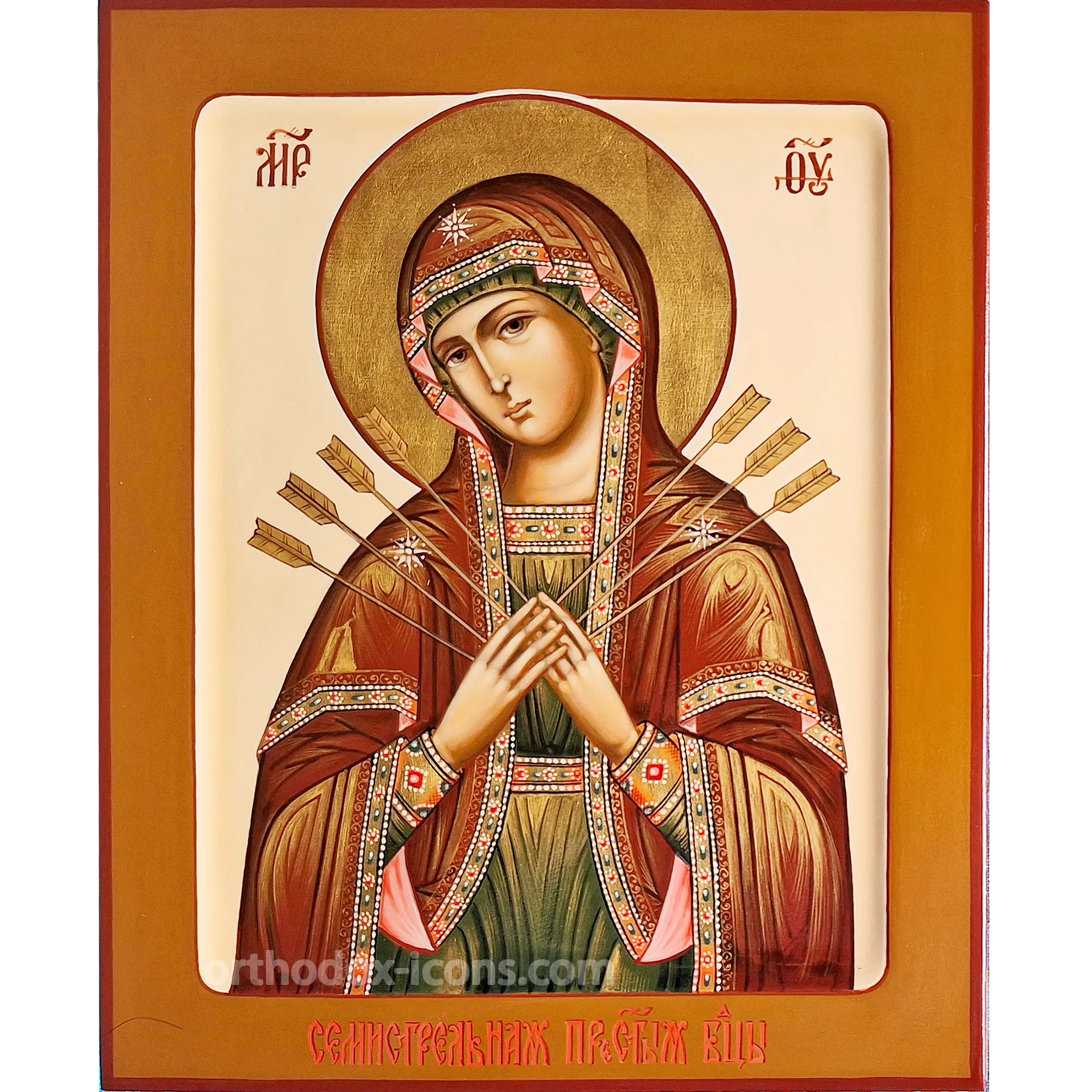 The Seven Arrows Orthodox Icon is an icon representing the image of the Blessed Virgin Mary with seven arrows pointing to her heart. This icon has a special significance in the Orthodox Christian tradition.