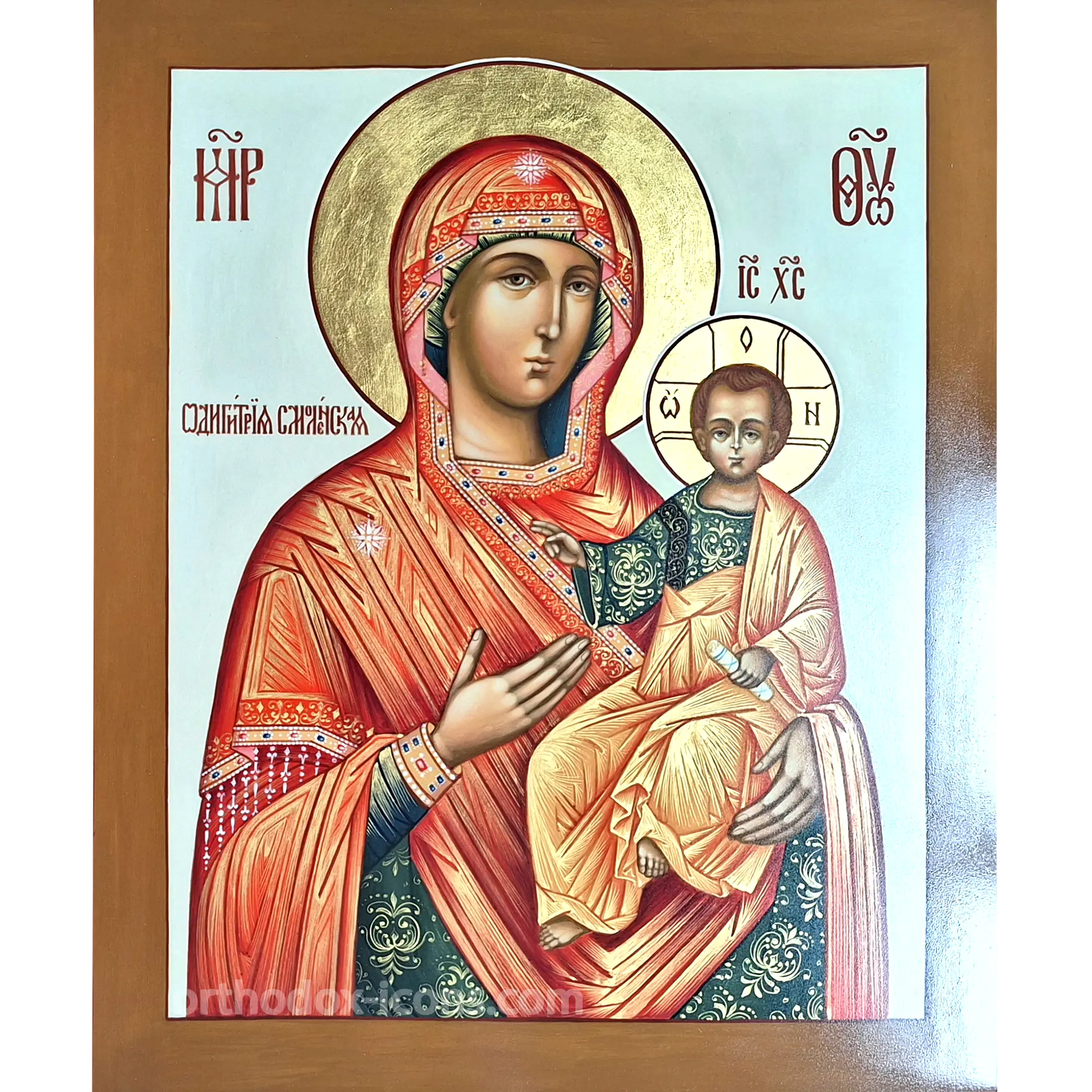 The Icon of the Smolensk Mother of God is a sacred representation of the Virgin Mary, revered as the Mother of Jesus Christ and a source of divine protection and maternal love. This icon holds a special place in Orthodox tradition as a symbol of faith, hope, and the nurturing care of the Virgin Mary.