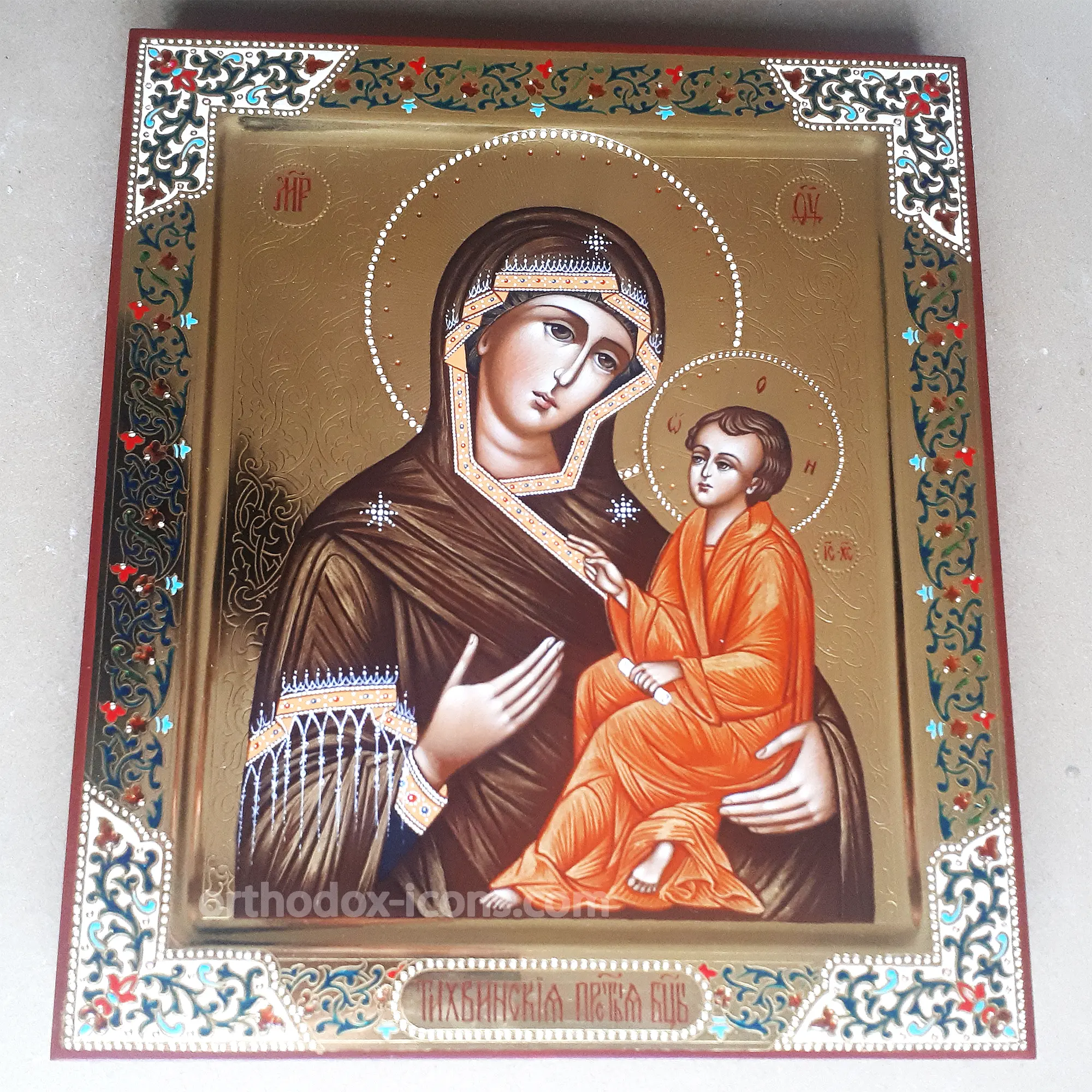 Order the Tikhvin Icon of Virgin Mary 27×31 in the icon painting workshop “Mstyora Icons”, Mstyora, Vladimir region, where icons have been painted since 1628.