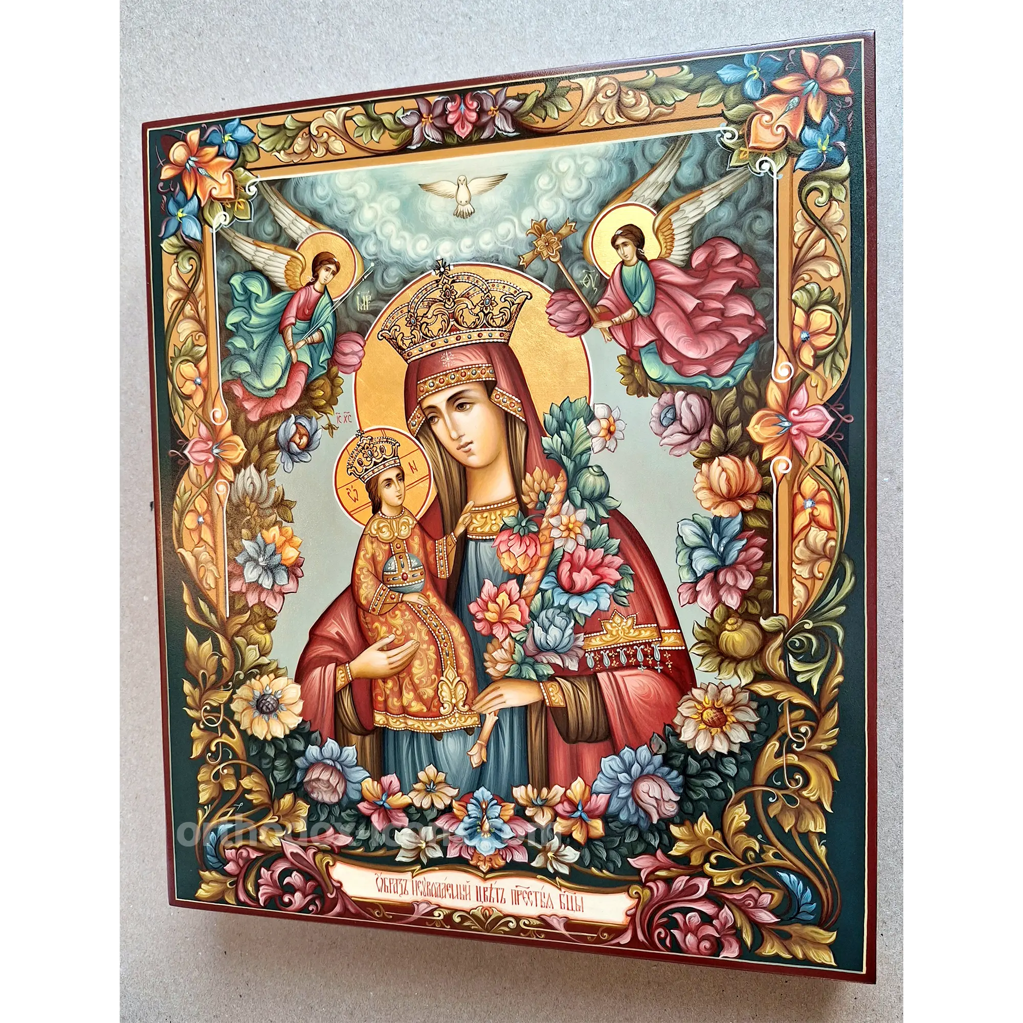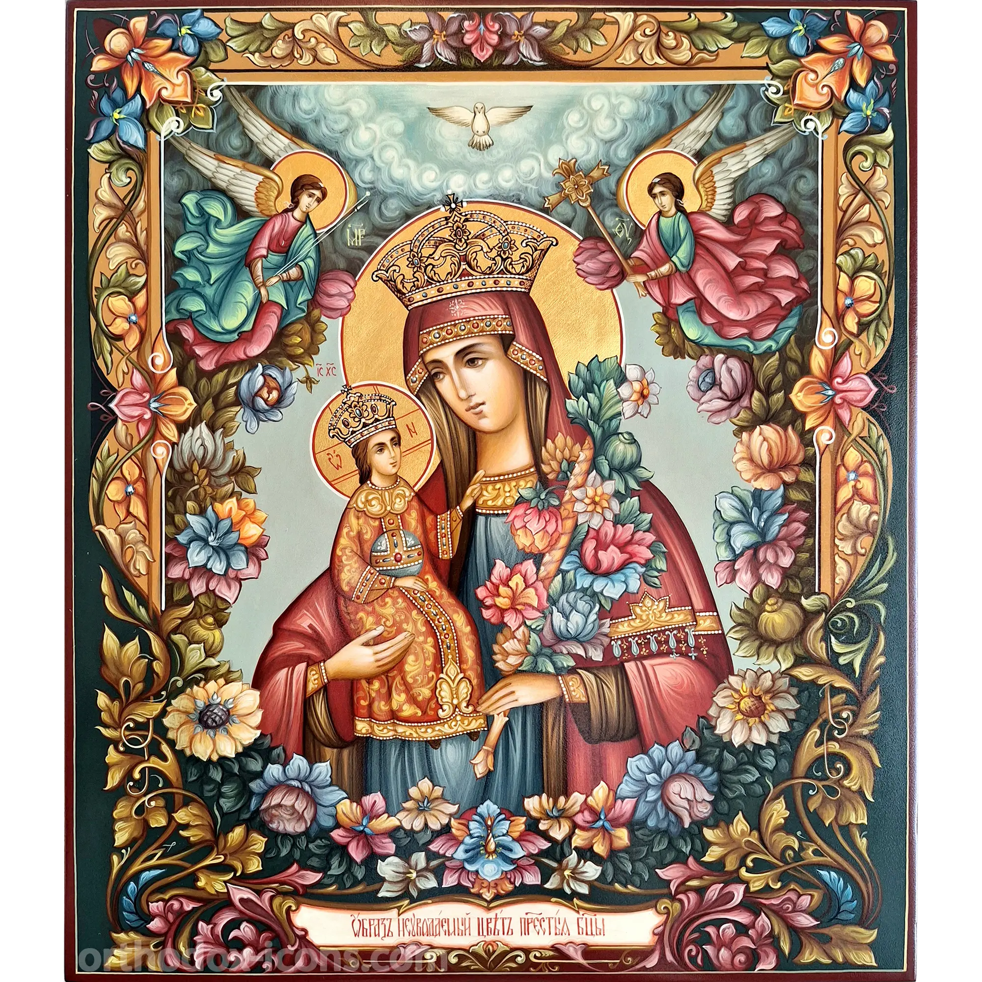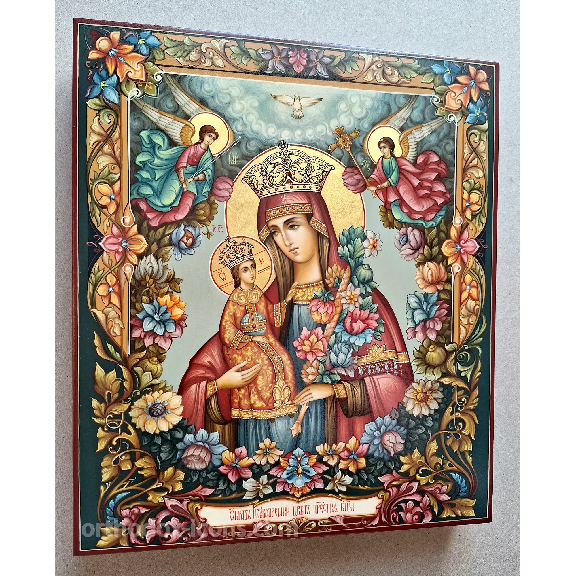 Order the icon of the Unfading Flower Orthodox Icon 27×31 in the icon-painting workshop “Mstyora Icons”, Mstyora, Vladimir region, where icons have been painted since 1628.