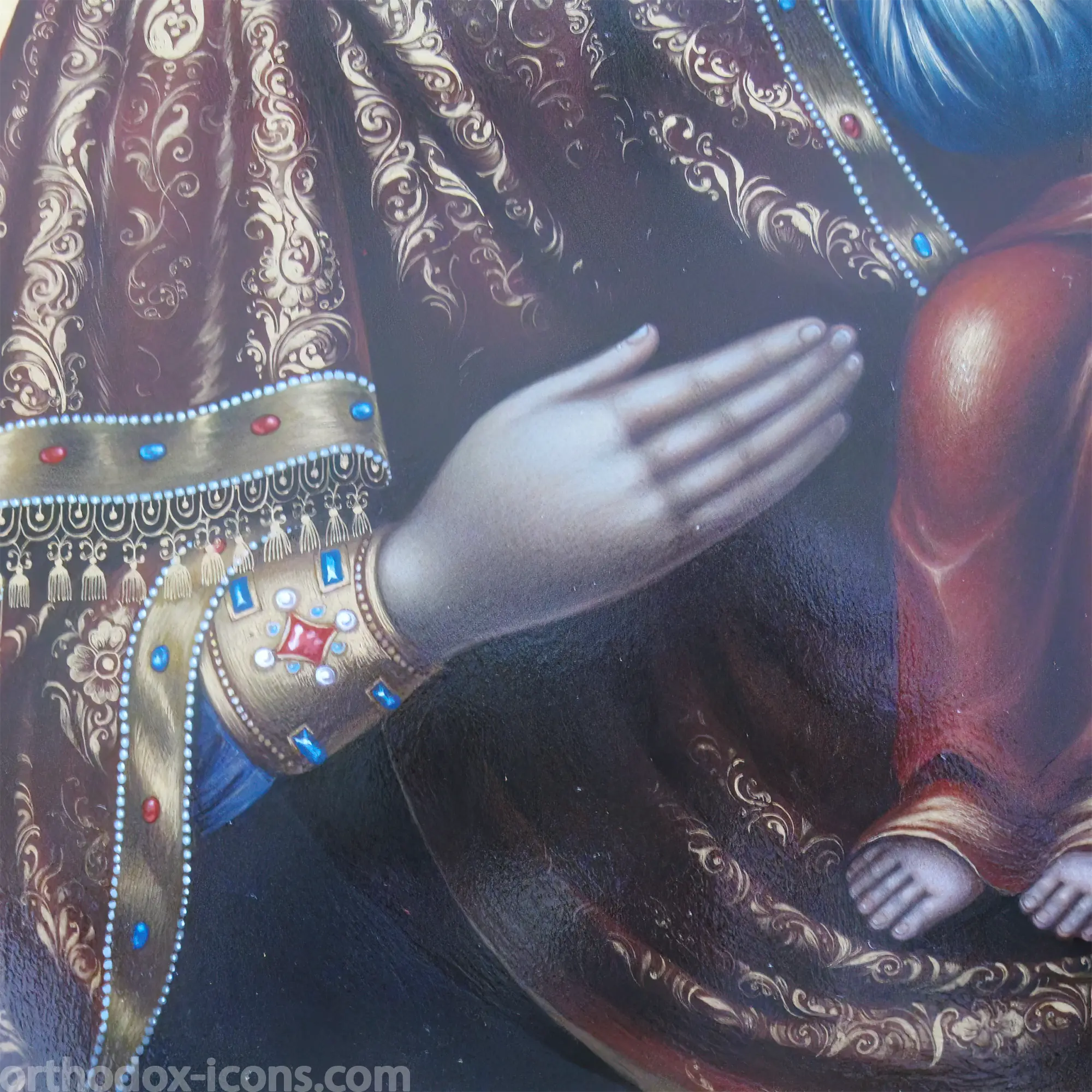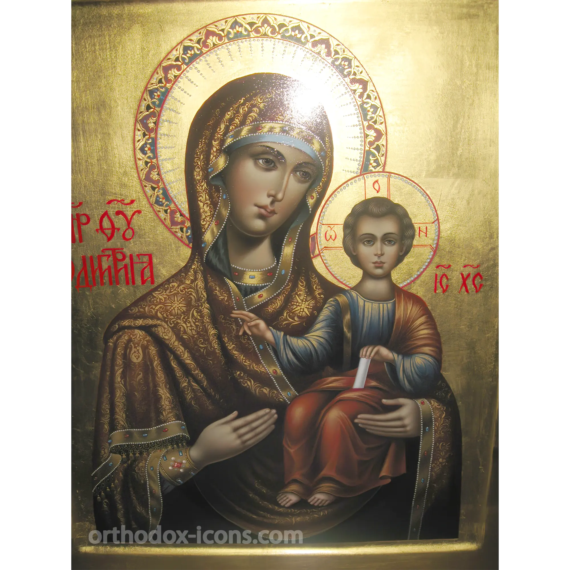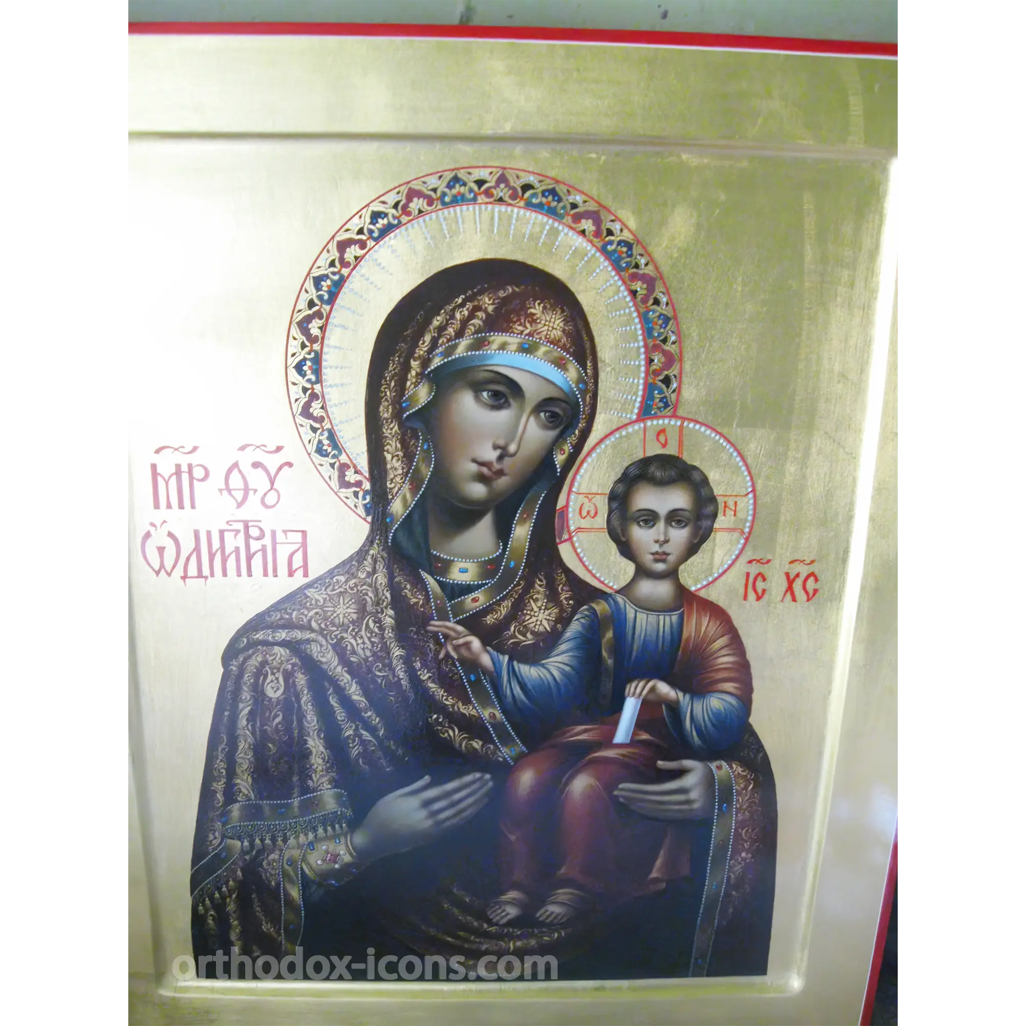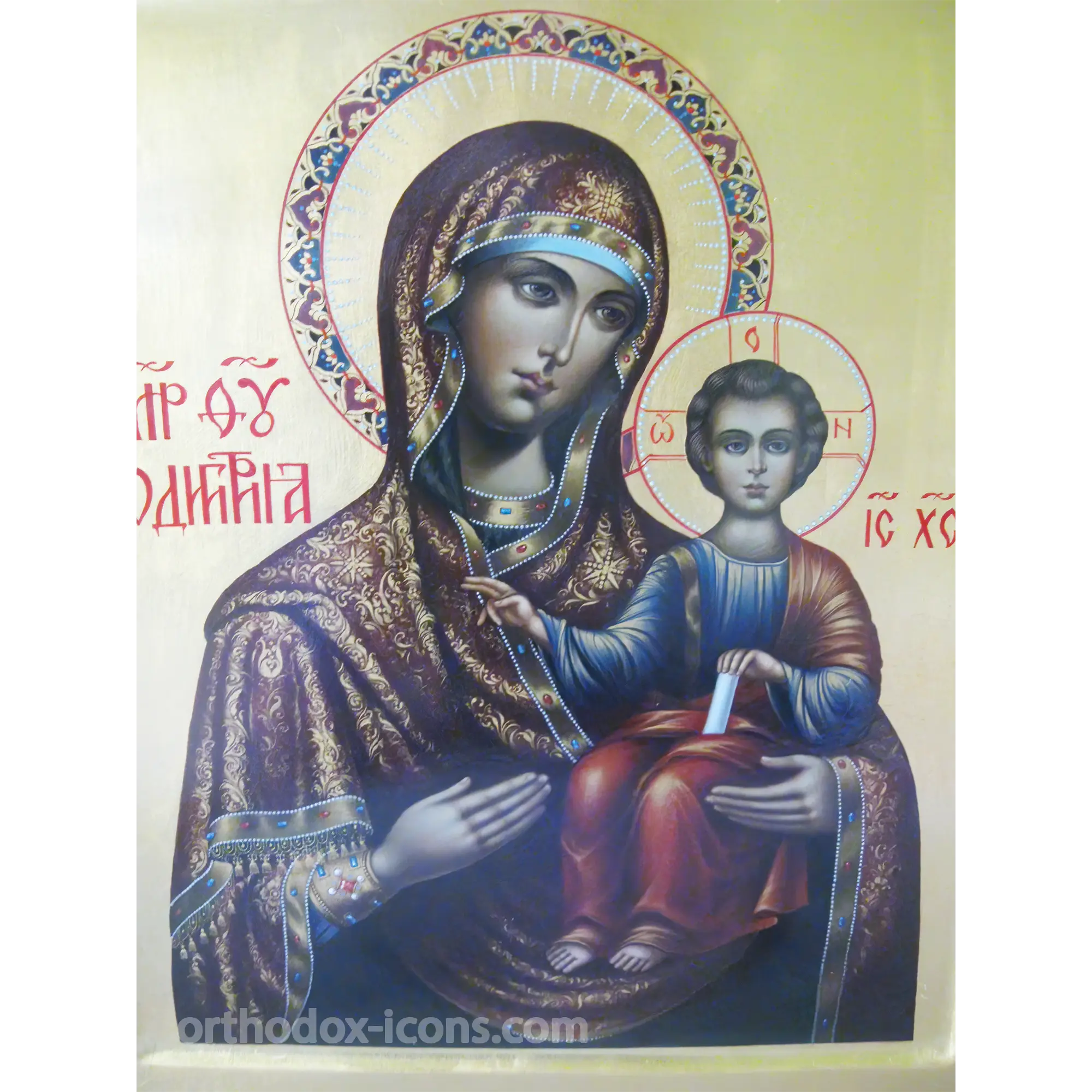 The Virgin Hodegetria Orthodox Icon (also known as the “Guide” or “Driver”) depicts the Mother of God with the Child Jesus on her left hand. This icon is one of the most revered and well-known icons of the Mother of God.